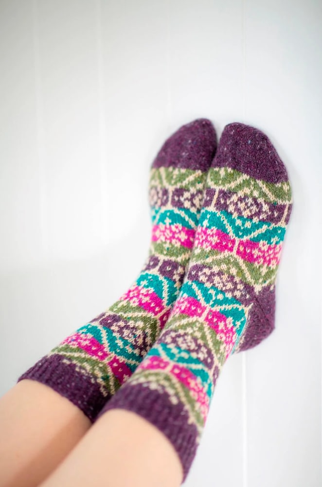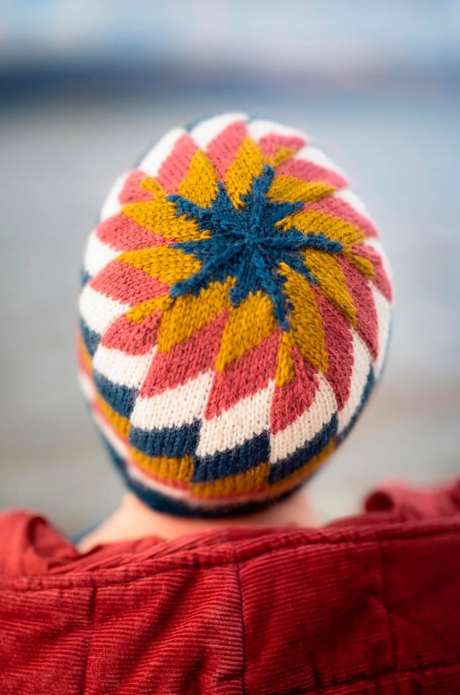 In Allover, Kate Davies has gathered together a colourful collection to capture the joy of stranded knitting. Inside this book you’ll find fourteen designs that are bold, playful and eclectic. Influenced by northern colourwork traditions from Norway and Sweden to Iceland and Shetland, there are fourteen allover designs to choose from, including graphic hats and mitts and cosy yoke pullovers and cardigans. In Starnkeeker, the familiar monochrome motifs of Selbu accessories are adapted for a colour-blocked Argyle vest, while the Tìoraidh cardigan reveals how a small “filler” motif might become a two-tone pattern’s main attraction. Kate encourages you to mix things up as well: many of the patterns are charted and photographed in several different colourways in patterns that are full of knitterly inspiration and opportunities for play. Whether you are whipping up a jolly pair of Pouzles, or taking your time over a show-stopping piece like Schene, there’s much creative joy to be found in the pages of this colourful book.