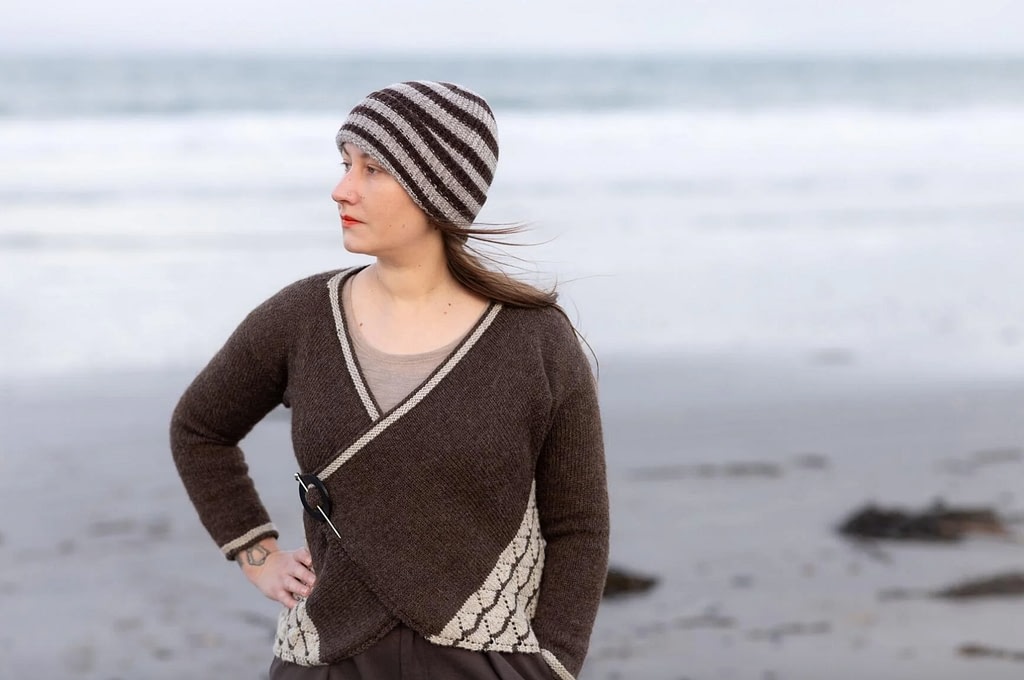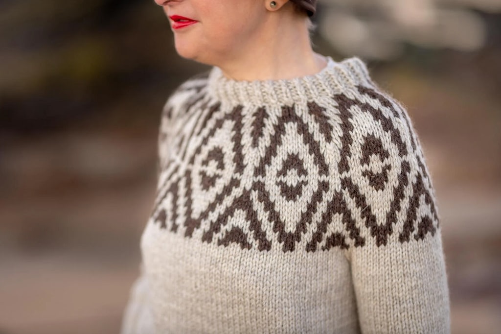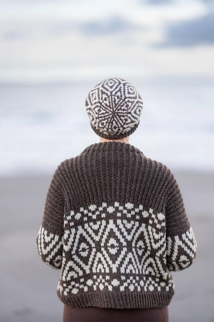 Celebrating the seasonal contrast between darkness and illumination, in this collection of two-tone knits, Kate Davies has created a book full of cold-weather inspiration. A trick of the light that’s only ever seen in winter is echoed in the structural motifs of Sun Pillars, while the spectacle of planetary alignment inspired allover colourwork hoody, Clanjamfrie.